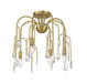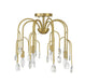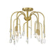 The Art Deco-inspired Savoy House Anholt 4-light convertible semi-flush mount is like a waterfall of glamour featuring curved branching arms adorned with faceted crystal drops in different shapes and sizes. Noble Brass finish. Anholt is 16.5" in width and has an adjustable height ranging from 16" to 69.5". It uses 4 candelabra size bulbs of up to 60 watts per bulb (bulbs not included). Comes with four 12" downrods and one 6" downrod. Can be used as a hanging pendant or ceiling light!