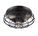 This Savoy House Scout 3-light ceiling flush mount brings a new twist on bold industrial style with its cage shade and English bronze finish. Flush mounts can be used on the ceiling of pretty much any interior room, including foyers, hallways, stairways, closets, bathrooms, bedrooms, kitchens and more! This fixture is damp area rated, so it can also be used in covered outdoor areas. Bulbs not included. Try using stylized bulbs like Edison or tubular bulbs for a different look! The English bronze finish can be matched with bronze hardware or mixed with hardware in other finishes. Scout is an excellent choice for industrial style spaces, but can also fit perfectly in farmhouse or rustic areas as well! When you choose a Savoy House lighting fixture, you can be certain you've selected a piece that will withstand the test of time.
