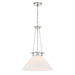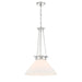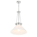 Bring in a bright, vintage-inspired lighting look with the Savoy House Myers 1-light pendant. Its white cased glass shade has a rich and lustrous appearance that makes it ideal for a wide variety of applications. Slim strands of chain add a decorative touch and heighten the vintage intrigue. Finished in Polished Nickel. Myers is 27" in height and 18" in width. Uses one standard size bulb of up to 60 watts. The bulb is not included.