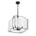 Create a soft and subtle glow with the Savoy House Ashlay 4-light pendant. Its drum shade of delicate organza is held in place on sleek and curving arms finished in Matte Black. Ashlay is 19" in height and 22" in width. Uses four candelabra size bulbs of up to 60 watts per bulb. Bulbs not included. Comes with 120" of chain.