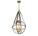 The Savoy House Bozeman 4-light pendant is a design that brings a touch of refined, equestrian-inspired style to your home. A seeded glass orb is held in place with straps of chocolate leather that pair perfectly with the warm brass finish. Bozeman is 32.5" in height and 18" in width. It uses four candelabra size bulbs of up to 60 watts per bulb. Comes with 120" of chain and 144" of cord.