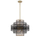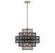 Three shapely shades of matte black mesh overlap and create heightened drama in the Savoy House Kelvin 6-light pendant light. Paired with warm brass accents, Kelvin takes industrial lighting style and adds a touch of glamour! It is 20" in diameter and has an adjustable height ranging from 22" to 68". Uses six standard size bulbs of up to 60 watts per bulb. Comes with four 12" downrods and one 6" downrod, plus 80" of cord.