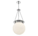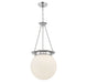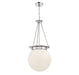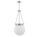 The Savoy House Manor 3-light pendant proves that a classic style can be stunning! An orb-shaped shade of white opal glass hangs down from an understated structure with timeless details. Finished in polished nickel. Manor is 31" in height and 13.5" in width. It uses 3 candelabra size bulbs of up to 60 watts per bulb (bulbs not included).
