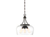 Get a pendant look with understated elegance when you get the new Savoy House Octave 3-light pendant. It features a single large shade of curved clear glass, minimal detailing and a bold English bronze finish. Pendants are extremely versatile and can fit in many different spaces, such as kitchens, family rooms, great rooms, foyers, entryways, offices, bedrooms and bathrooms. Because this pendant is chain-hung, you can use as much or as little chain as you need to fit your specific hanging height needs, and this pendant can be used on a sloped ceiling. Since the bulbs are exposed, try using stylized bulbs (not included) like Edison style for a different twist! The English bronze finish can be paired with bronze hardware or mixed with hardware in other finishes. Try the Octave with glam, transitional or contemporary style rooms for a chic look. When you choose a Savoy House lighting fixture, you can be certain you've selected a piece that will withstand the test of time.