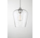 In the Savoy House Octave 1-light pendant, a bold, light-colored frame and streamlined silhouette create an air of elegance and sophistication. The satin nickel finish and large clear glass shade go with absolutely everything. Whether you have transitional, contemporary, bohemian or other decor styles in your home, you'll love the way this Octave fixture stylishly blends in. At 8" wide by 10.5" high, this pendant is a perfectly graceful, proportionate size whether used solo or in groupings. The curved glass shade has a sleek, uncluttered look and one 60W standard size bulb provides lovely light for clean, casual style in your dining area, living room, kitchen, foyer, bedroom, bathroom, hallway, family room, office, great room or stairway.