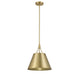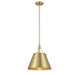 The Savoy House Willis 1-light pendant has an elegant look with a solid metal shade finished in warm brass. Perfect for use solo or in groupings! Willis is 14" in width and has an adjustable height ranging from 16" to 69.5". Comes with four 12" downrods and one 6" downrod. It uses 1 standard size bulb with a max of 60 watts (bulb not included).