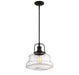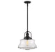 From Savoy House, the Garvey 1-light pendant puts a new spin on schoolhouse style. A curvy clear glass shade is paired with smart details, creating a look that is great for any space. Finished in English bronze. Pendants are extremely versatile and can fit in many different spaces, such as kitchens, family rooms, great rooms, foyers, entryways, offices, bedrooms and bathrooms. This pendant comes with three 9.5-inch downrods, so you can get the perfect hanging height for your needs, and it can be hung on a sloped ceiling. Bulb not included. You can pair Garvey with hardware finished in bronze or mix it with hardware in other finishes. Its classic look fits well in vintage style rooms as well as transitional areas. When you choose a Savoy House lighting fixture, you can be certain you've selected a piece that will withstand the test of time.