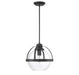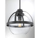 This Savoy House Pendleton 1-light pendant is a smart way to pep up the illumination and style in any room. It showcases a large orb of clear glass that is open at the bottom, allowing for more direct light and making it easy to replace the bulb. Metal bands bisect the shade and help hold it to the fixtureï¾'s base. Try using this fixture in kitchens, foyers, bedrooms and home offices, though truly the possibilities are endless. Finished in matte black. This fixture is 14" wide and has an adjustable height that ranges from 23.5" to 42.5". Uses a standard size bulb of up to 60 watts (not included).