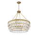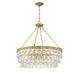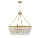 The Savoy House Windham 6-light pendant is a glamorous, modern look that brings a touch of luxury and elegance to your home. The circular frame, finished in warm brass, holds three descending tiers of gorgeous clear crystals in alternating oval and teardrop shapes that add wonderful texture and sparkle. Six 60-watt candelabra size bulbs provide beautiful illumination for your glam, contemporary or transitional decor style. The pendant is 28" wide and 28" high, creating a perfect fit for your dining area, living room, foyer, great room, bedroom, stairway, kitchen or family room.