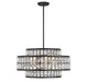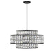 It is often said that lighting is the jewelry of the home and the Savoy House Renzo 4-light pendant is a perfect example of this saying. Faceted clear crystal decorates the two layers of shades, which overlap in an intriguing way and are finished in matte black. Renzo is 22" in width and has an adjustable height ranging from 12.5" to 66". Comes with four 12" downrods and one 6" downrod. It uses 4 standard size bulbs of up to 60 watts per bulb (bulbs not included).