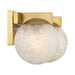 The Savoy House Darien is a 2-light bath bar with fabulously chilly appeal. A minimal frame is finished in bold Warm Brass and holds two orbs of Ice Glass, adding sub-zero cool with tons of frosty texture. Darien is 7.25" in height, 17" in width and extends 7.25" from the wall. Uses two candelabra size bulbs of up to 60 watts per bulb. Bulbs not included. This bath bar is damp area rated.