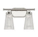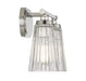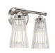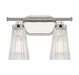 Textured, eye-catching shades of clear ribbed glass take center stage in the Chantilly 2-light bathroom vanity light from Savoy House. Finished in polished nickel. Chantilly is 10" in height, 14" in width and extends 7" from the wall. Uses two standard size bulbs of up to 60 watts per bulb. Damp area rated.