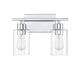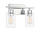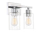 Chic contemporary style defines the Savoy House Lambert 2-light bath vanity light. The straight lines of the light bar, the cylindrical glass shades and the backplate have an uncluttered, modern aesthetic while the beautiful polished chrome finish is pure elegance. This streamlined design works extremely well with transitional decor, too, making it a terrific choice in your bathroom, dressing area or powder room. Two 60W standard size bulbs are visible through the clear glass shades, providing superb illumination. The fixture is 13.25" wide by 9.75" high and reversible, so you choose whether to mount it as uplight or downlight. You'll definitely like what you see when you have the stylish Lambert above your mirror.