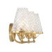 Infuse a bathroom with the vintage-inspired charm of the Candler 3-light bath bar from Savoy House. Three shades of tapered clear glass showcase a diamond pattern that adds texture, heightens the drama and recalls beautiful antique glassware. Warm Brass finish. Candler is 8.75" in height, 24" in width and extends 7.5" from the wall. Uses three candelabra size bulbs of up to 60 watts per bulb. Bulbs not included. This bath light is damp area rated and must be installed as shown.