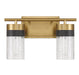 From top to bottom, the Savoy House Brickell 2-light bath vanity light is designed to make any bathroom a standout space. Its classic pairing of warm brass and black is made even better with the addition of textural clear crackled glass shades. Brickell is 8.75" in height, 14" in width and extends 5" from the wall. It uses 2 standard size bulbs of up to 60 watts per bulb (bulbs not included).