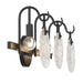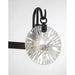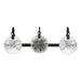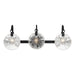 It is often said that lighting is the jewelry of the home. With its fun hook-style arms that hold flat, round, starburst clear glass shades, the Savoy House Addison 3-light bath light is a great example of this saying. The backplate is finished in Matte Black and mimics the shape of the glass shades. Addison is 9" in height, 24" in width and extends 6.5" from the wall. Uses three candelabra size bulbs of up to 60 watts per bulb. Bulbs not included. This bath bar is damp area rated and must be installed as shown.