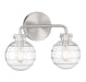 Create a textural, intriguing look with the Savoy House Mason 2-light bath vanity light. Clear swirl glass orbs take center stage in a streamlined design that has a satin nickel finish. Mason is 10" in height, 13.5" in width and extends 6.25" from the wall. It uses two candelabra size bulbs of up to 60 watts per bulb (bulbs not included).