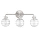 Create a textural, intriguing look with the Savoy House Mason 3-light bath vanity light. Clear swirl glass orbs take center stage in a streamlined design that has a satin nickel finish. Mason is 10" in height, 22" in width and extends 6.25" from the wall. It uses three candelabra size bulbs of up to 60 watts per bulb (bulbs not included).