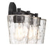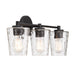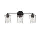 Add a hint of nature-inspired style to your bathroom with the Savoy House Ballas 3-light bath vanity light. Clear hammered glass shades give a watery effect for extra intrigue and dimension. Black finish. Ballas is 9.75" in height, 23.5" in width and extends 6.5" from the wall. It uses 3 standard size bulbs of up to 60 watts per bulb (bulbs not included).