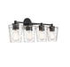 Add a hint of nature-inspired style to your bathroom with the Savoy House Ballas 4-light bath vanity light. Clear hammered glass shades give a watery effect for extra intrigue and dimension. Black finish. Ballas is 9.75" in height, 31.5" in width and extends 6.5" from the wall. It uses 4 standard size bulbs of up to 60 watts per bulb (bulbs not included).