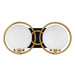 Art Deco style is reinvented in this chic Savoy House Alhambra 2-light bath bar. Orbs of soft frosted glass held on slender arms sit in front of a rectangular backplate accentuated by circles that frame the glass beautifully. A Matte Black and Warm Brass finish makes the perfect pairing. This bath bar is 7.75" in height, 16" in width and extends 7" from the wall. Uses two candelabra size bulbs of up to 60 watts per bulb. Bulbs not included. This bath light is damp area rated and must be installed as shown.