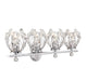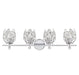 Give your bathroom its flowers with the whimsical Savoy House Moreno 4-light bath vanity light. Metal stems topped with clear crystal buds surround each light to create a look that is always fresh and fun, whether the lights are on or off. Finished in chrome. Moreno is 9.5" in height, 31" in width and extends 6.75" from the wall. It uses 4 standard size bulbs of up to 60 watts per bulb (bulbs not included).