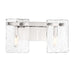 Bring a beautiful ocean-inspired lighting look to your home with the Savoy House Genry 2-light bath bar. It is decorated with rippling panes of handmade glass and finished in Polished Nickel. Genry is 7.75" in height, 15.25" in width and extends 5.5" from the wall. It uses two candelabra size bulbs of up to 60 watts per bulb. Bulbs not included. This bath light is damp area rated and must be installed as shown.