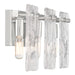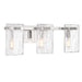 Bring a beautiful ocean-inspired lighting look to your home with the Savoy House Genry 3-light bath bar. It is decorated with rippling panes of handmade glass and finished in Polished Nickel. Genry is 7.75" in height, 25" in width and extends 5.5" from the wall. It uses three candelabra size bulbs of up to 60 watts per bulb. Bulbs not included. This bath light is damp area rated and must be installed as shown.
