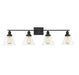 This Savoy House Drake 4-light bath bar has an alluringly simple style with a few choice hardware details and shades of clear glass. It may be mounted as either uplight or downlight. Bath bar lights are a classic choice for illuminating vanity mirrors in bathrooms big and small. Because the bulbs are exposed, try using stylized bulbs (not included) such as Edison for a different look! The matte black finish can be paired with black hardware or mixed with hardware in other fixtures. Add Drake to industrial, transitional or contemporary rooms for a bold look. When you choose a Savoy House lighting fixture, you can be certain you've selected a piece that will withstand the test of time.