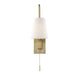 Bring helpful illumination to your home with the Owen 1-light sconce by Savoy House. Its sleek design includes a curving arm that is adjustable, swinging from side to side so you can get light right where you need it. A white fabric shade provides a soft, comfortable glow to go with the warm brass finish. Comes with a decorative pull chain. Can be hard-wired or used with the included cord and plug. Bulb not included. Adjustable sconces are a perfect idea for use at the bedside, taking the place of bedside table lamps, and are also ideal task lighting for living rooms and other spaces! The warm brass finish can be paired with brass hardware or mixed with hardware in other fixtures. The understated look of Owen makes it a great fit for rooms of any decor style. When you choose a Savoy House lighting fixture, you can be certain you've selected a piece that will withstand the test of time.