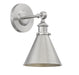 Set a dramatic mood with the Glenn wall sconce. Whether you want the industrial-inspired chic of an old noir film or the simple serenity of a country homestead novel, this fixture perfectly creates a classic scene right in your own home. The uncluttered details of the arm hardware and conical metal shade are an ideal fit for transitional, modern vintage, urban farmhouse, industrial or loft-like decor styles. A high-quality satin nickel finish looks terrific now and for years to come. The fixture is 7" wide by 12" high and holds a 60W standard size bulb. Plus, it's adjustable because you can tilt the shade to place the light exactly where you want it. You'll love the way this sconce's subtle sophistication and streamlined casual style sets the stage in your living space.