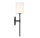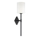 The Savoy House Destin 1-light wall sconce is a contemporary decorative accent and a lovely source of light all in one. It has a sleek modernism that will add a pop of high style and blend well with your transitional, modern, urban farmhouse or eclectic decor. The matte black finish is smooth and luxurious. The fixture has a diamond-shaped wall plate and a long, slim vertical arm holding a cylindrical white opal glass shade. This sconce measures 6" wide by 25" high and holds a 60W standard size bulb, making it a terrific addition to your dining room, living room, entryway, bedroom, great room, office, hallway or media room walls. It's a modern, elegant sconce you'll appreciate for years to come.