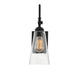 A sleek and sophisticated aesthetic defines the York single-light wall sconce. Measuring 5.5" wide x 16" high and extending 8.5" from the wall, this one-light sconce in a black finish provides ample illumination from one 60-watt standard size bulb. The clear seeded glass shade maximizes the light output.