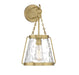 The Savoy House Crawford 1-light wall sconce proves that a classic style can be stunning! A lantern-inspired shade of clear water glass hangs down from an understated structure with industrial-inspired details. Finished in warm brass. Crawford is 17.25" in height, 10" in width and extends 9.25" from the wall. It uses 1 standard size bulb with a max of 60 watts (bulb not included).