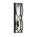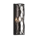 Get an unbelievably cool lighting look with the Savoy House Snowden 1-light sconce. Its tall, slim, cylindrical structure features an intricate curving design that perfectly accentuates the glacier glass shade within. Finished in Matte Black. Snowden is 14" in height, 4.75" in width and extends 4" from the wall. It uses a candelabra size bulb of up to 60 watts. The bulb is not included. This sconce is damp area rated.