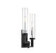 Talk about versatility! The matte black finish and chrome accents of the Savoy House 2-light wall sconce go with everything and the clean, timeless design looks terrific with many decor styles. The slim, tubular clear glass shades around two 60W candelabra size bulbs pair nicely with the branching arms. The overall effect is symmetrically satisfying and adds stylish illumination to your room's layered lighting.