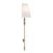 Add a stately lighting look to any space with this Savoy House Roxbury 2-light sconce. Its arm, finished in Warm Brass, showcases thoughtfully placed detailing that contrasts nicely with the white fabric shade. Roxbury is 31.5" in height, 9.5" in width and extends 6" from the wall. Uses two candelabra size bulbs of up to 60 watts per bulb. Bulbs not included. This sconce is damp area rated.
