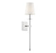 This Savoy House Monroe 1-light sconce features a long sleek body, a white fabric shade and a classy, contemporary silhouette. polished nickel finish. Sconces add a touch of style and light to any wall, including but certainly not limited to hallways, entryways, stairways, great rooms and dining rooms. You will also often see a pair of sconces flanking a bathroom vanity mirror to provide an even, flattering wash of light. Bulb not included. The polished nickel finish can be paired with nickel hardware or mixed with hardware in other finishes. Monroe is a perfect addition to rooms of any style, especially transitional or classic. When you choose a Savoy House lighting fixture, you can be certain you've selected a piece that will withstand the test of time.