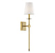 This Savoy House Monroe 1-light sconce features a long sleek body, a white fabric shade and a classy, contemporary silhouette. warm brass finish. Sconces add a touch of style and light to any wall, including but certainly not limited to hallways, entryways, stairways, great rooms and dining rooms. You will also often see a pair of sconces flanking a bathroom vanity mirror to provide an even, flattering wash of light. Bulb not included. The warm brass finish can be paired with brass hardware or mixed with hardware in other finishes. Monroe is a perfect addition to rooms of any style, especially transitional or classic. When you choose a Savoy House lighting fixture, you can be certain you've selected a piece that will withstand the test of time.