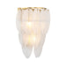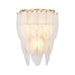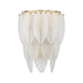 The Savoy House Boa 3-light sconce was designed by Breegan Jane, an award-winning interior designer and TV host based in Los Angeles. Accordingly, Boa is infused with luxurious Old Hollywood glamour. Frosted glass feathers cascade down in overlapping rows, creating a look that is sure to turn heads, and the Warm Brass finish is a perfect example of how Breegan uses metallics to elevate her designs. Boa is 14" in height, 10.5" in width and extends 6" from the wall. It uses three candelabra size bulbs of up to 60 watts per bulb. Bulbs are not included. This sconce is damp area rated.