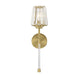 Take the glam factor of any room up a notch with the Savoy House Garnet 1-light sconce! Slats of faceted clear crystal add shimmer while the crystal tube detailing on the arm brings even more shine. Finished in warm brass. Garnet is 20.5" in height, 5.5" in width and extends 7" from the wall. Uses 1 standard size bulb of up to 60 watts (bulb not included).