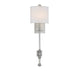 With its perfect blend of traditional and contemporary style, the Devon sconce will be right at home in your transitional decor. The clean straight lines of the light arm and square wall plate are lightly embellished with simple, attractive finial and detailing, the finished in satin nickel. A white drum-style fabric shade is chic and fresh-looking and the single 60W candelabra size bulb provides lovely light. Overall, the Devon is a fixture with a timeless, elegant aesthetic. This sconce is 7.5" wide, 26.5" high and extends 5.5" from the wall. It is simple yet sophisticated style for your dining area, living room, bedroom, great room, entryway, office, media room or hallway.