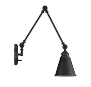 The Morland sconce provides classic, stylish wall lighting. Understated details highlight its functionality, the light arm is adjustable and there's an on-off switch on the circular wall plate. You may hardwire this sconce or use with the included cord and plug. Adjustable arm sconces are incredibly versatile. Try using them at the bedside, taking the place of table lamps or as task lighting for living rooms and other spaces! The high-quality matte black finish looks terrific with other hardware in your home and the sconce design has classic charm that suits vintage, industrial, transitional and many other decor styles. The straight conical metal shade encloses one 60W standard size bulb and the shape directs light exactly where you want it.