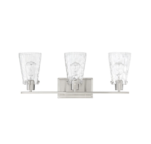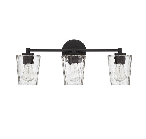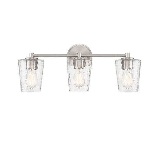 Add a hint of nature-inspired style to your bathroom with the Savoy House Ballas 3-light bath vanity light. Clear hammered glass shades give a wate...