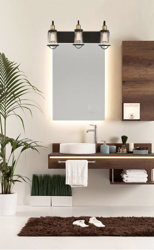 A fashionable blend of matte black and warm brass makes this Savoy House Sidney 3-light bathroom vanity light a bold choice for the bath. Highly te...