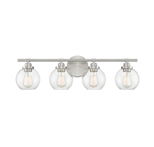 This Savoy House Wright 4-light bath vanity light showcases streamlined style that makes it ideal for any bathroom. Round clear glass shades add an...