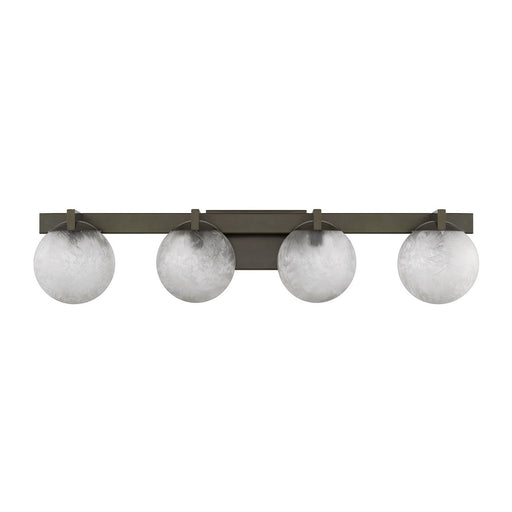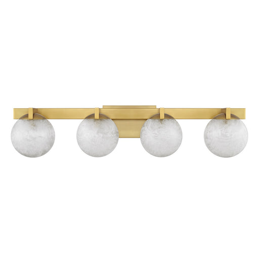 The Savoy House Darien is a 4-light bath bar with fabulously chilly appeal. A minimal frame is finished in bold Warm Brass and holds four orbs of I...