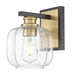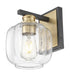 Illuminate your decor style with this one light Oxley bath fixture from Acclaim Lighting. The design features a mixed metals finish in black and plated brass. Curved clear glass adds dimension to the look. Stylish and sophisticated, the design is ideal for bath and vanity areas over sinks or sides of a mirror.