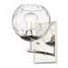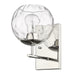 Breathe new life into your bathroom with the Mackenzie Collection of lighting. This glamorous family adds bling to your space with its shiny Polished Nickel finish reflecting the Rippled Water glass. A modern-chic style.