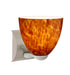 Sasha has a classical bell shape that complements aesthetic, while also built for optimal illumination. Our Amber Cloud glass is full of floating, vibrant warm tones that range from light gold to deep amber. When lit, the humid color palette illuminates to exude a harmonious display. This dcor is created by rolling molten glass in small bits of brown hues called frit. The result is a multi-layered blown glass, where frit color is nestled between an opal inner layer and a clear glossy outer layer. This blown glass is handcrafted by a skilled artisan, utilizing century-old techniques passed down from generation to generation. Each piece of this dcor has its own artistic nature that can be individually appreciated. The mini sconce fixture is equipped with a sleek arcing die cast lamp holder and matching radiused rectangular canopy. These stylish and functional luminaries are offered in a beautiful Satin Nickel finish.